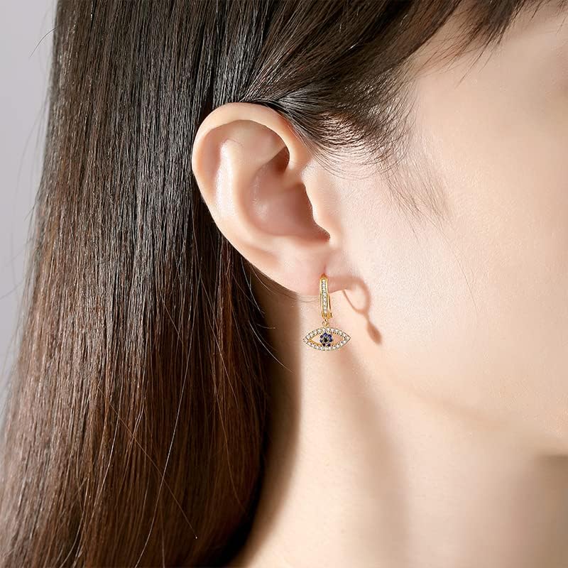 Home Earrings 14K Gold Moissanite Evil Eye Hoop Earrings for Women,Delicate Sapphire Hollow Hamsa Huggie Earrings,Fashion Lucky Jewelry Gift for Her