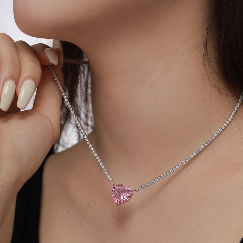 14K Gold Moissanite Heart Tennis Chain Necklace for Women, Love Heart Pendant Necklace, Fashion Jewelry Gift for Her