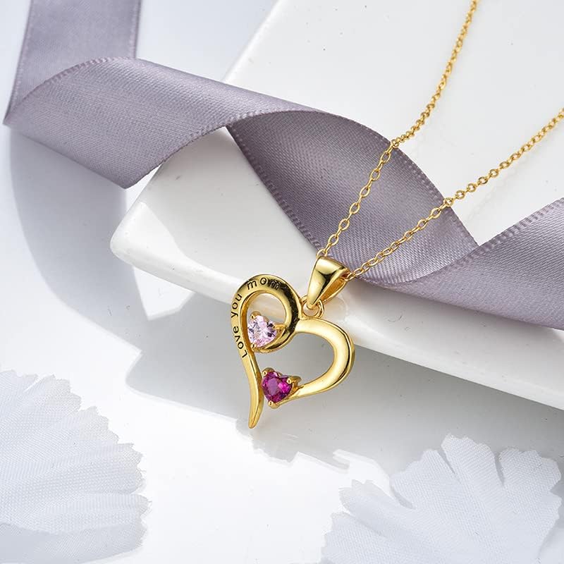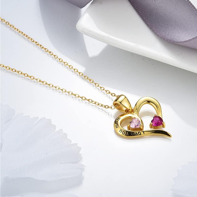 Home Necklaces 14K Gold Moissanite Ladies’ Pendant Necklace,’Love You Mom’ Hollow Heart Moissanite Diamond Necklace,Creative & Elegant Gift to Honor Mom