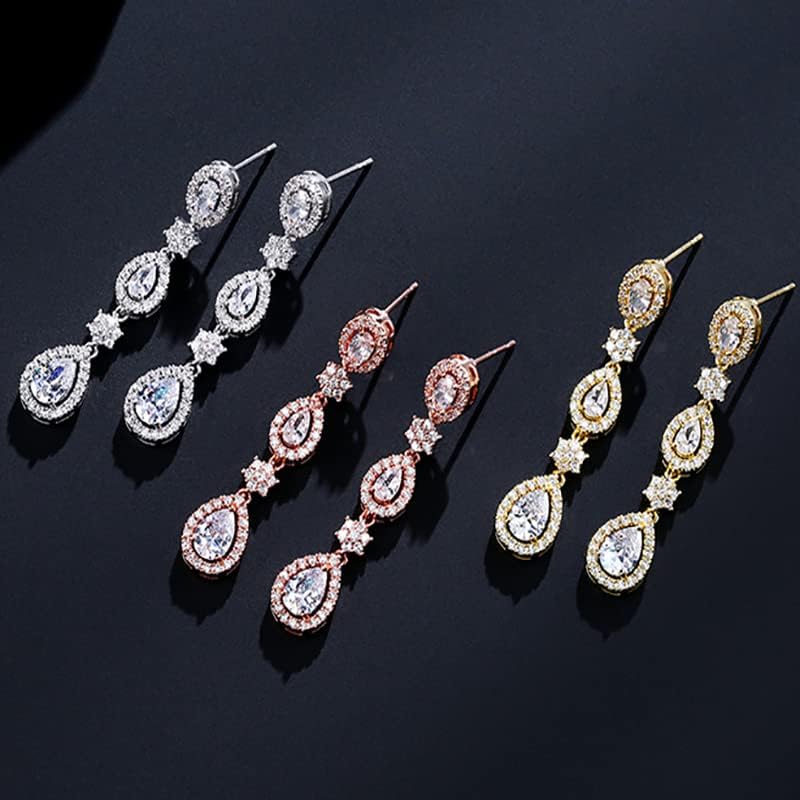 【Long Design】The unique long drop earrings are set with sparkling crystals, teardrop shaped crystals, embellished with a circle of round moissanite. The exaggerated and gorgeous design combines the beauty of art, suitable for various occasions.