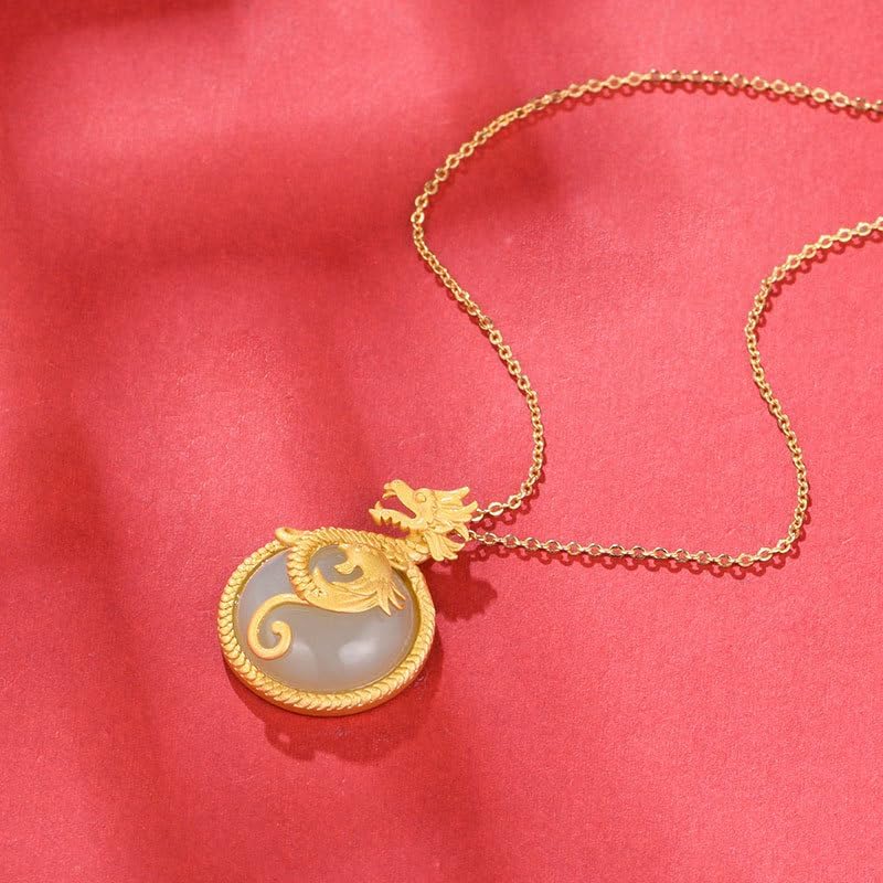 Gold Dragon Pendant Necklace, Zodiac Dragon Ice Jade Pendant Necklace, Wonderful New Year Gift for Family and Friends