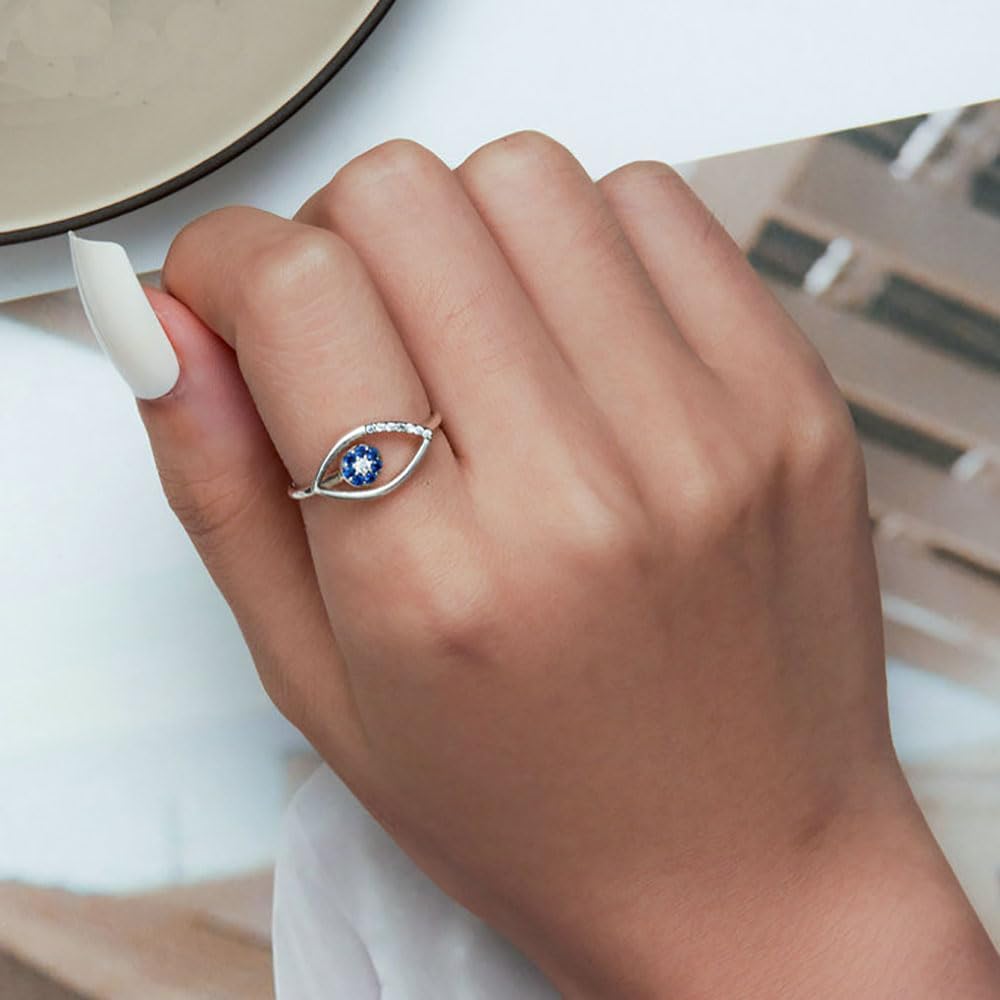 【Sparkling Gemstone Inlay】The Evil Eye is brought to life with a vivid blue sapphire and the brilliant sparkle of Moissanite stones. These gemstones are chosen for their clarity and color, contributing to the ring’s captivating allure.