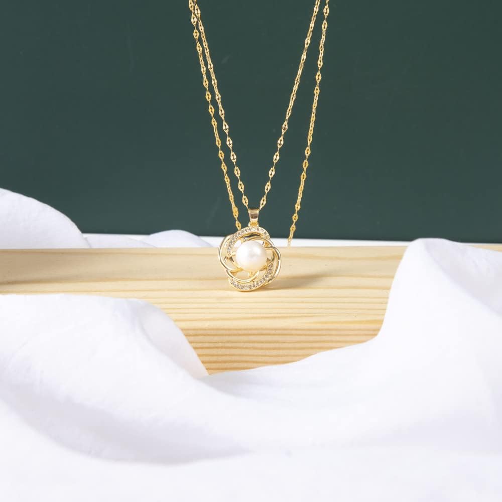 【Design Details】Natural freshwater pearls are inlaid in the center of the rose-shaped pendant and strung together with a unique chain, which perfectly shows the beauty of nature and makes everyone who wears this gold pearl necklace look elegant and charming.