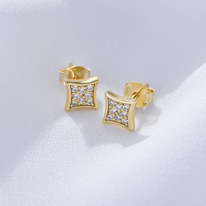Home Earrings 14K Gold Post Stud Earrings for Women,Dainty Pave Moissanite Rhombus Earrings,Fashion Jewelry Gift for Her