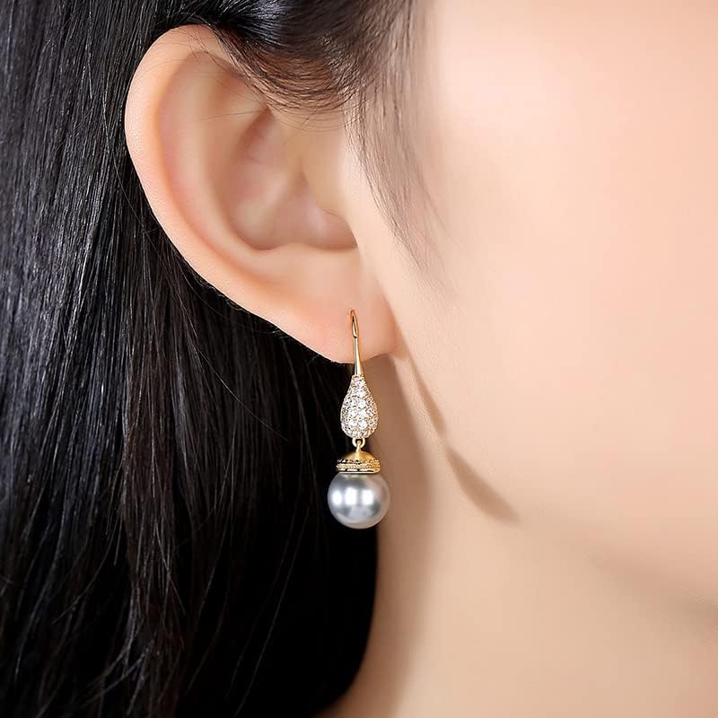 【Unique Design】This is a unique pearl drop earrings, the earhook design makes wearing more convenient, the earrings are inlaid with sparkling moissanite, which adds a sense of hierarchy to the whole, suitable for all occasions.