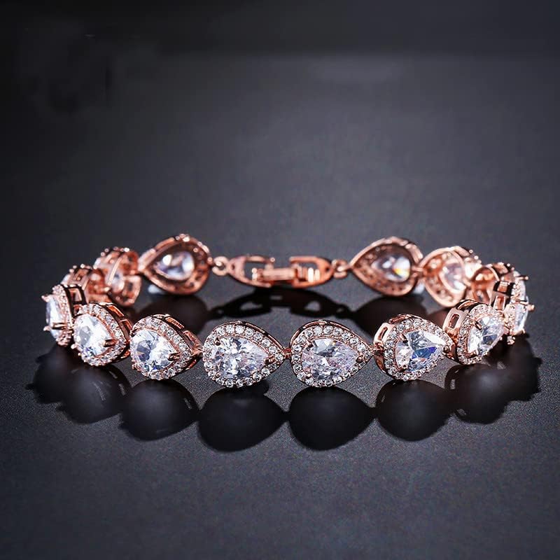 Home Bracelet 14K Gold Tear Drop Moissanite Bracelet for Women, Luxury Water Drop Chain Charm Bracelet, Fashion Christmas Jewelry Gift for Her
