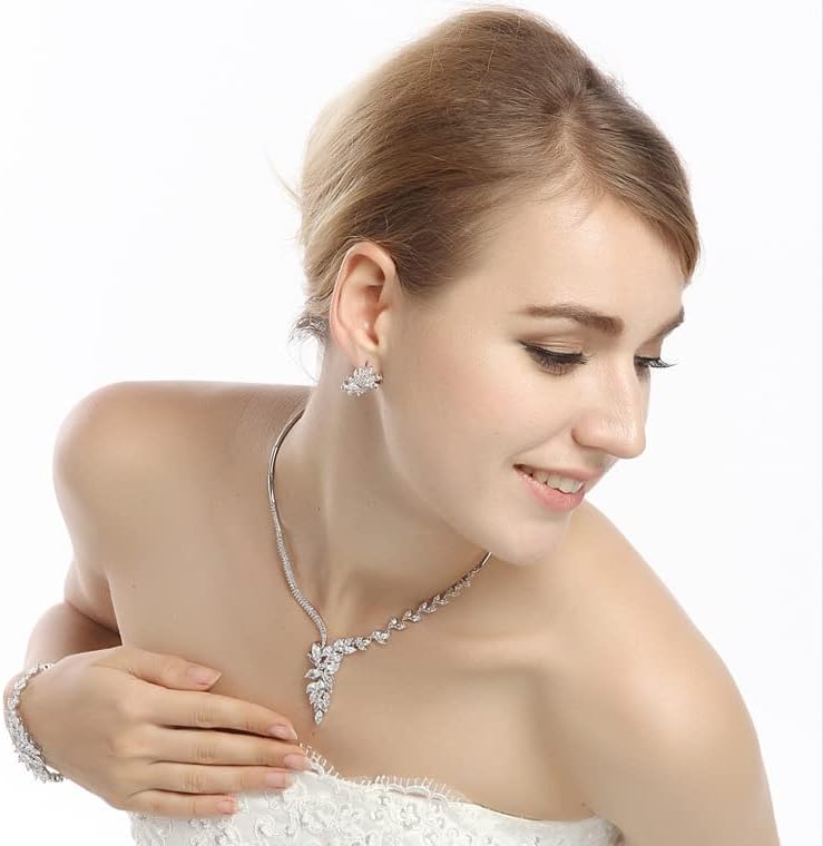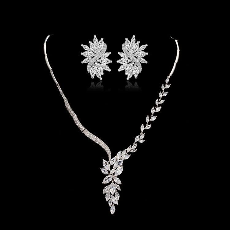 【Luxury Design】Gorgeous necklace and earrings make up this exquisite jewelry set, inlaid with natural crystals and sparkling moissanite, classic and elegant to show your beauty, it is the most suitable jewelry set for wedding and engagement occasions.