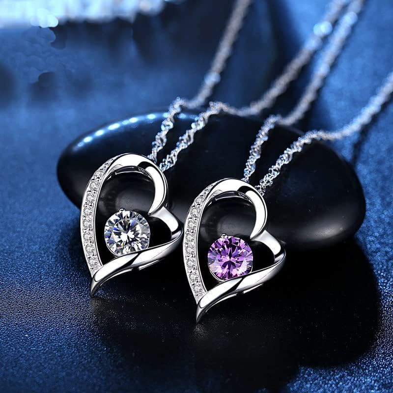 14K White Gold Heart Necklace, Purple Sapphire Pendant – Beautiful Valentine’s Day, Mother’s Day Gifts