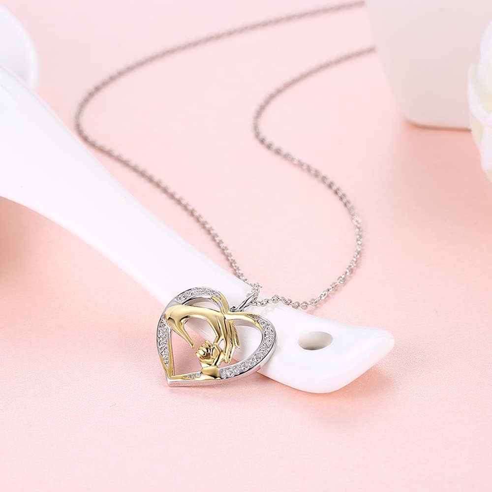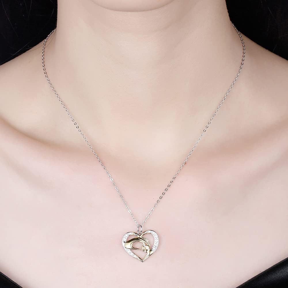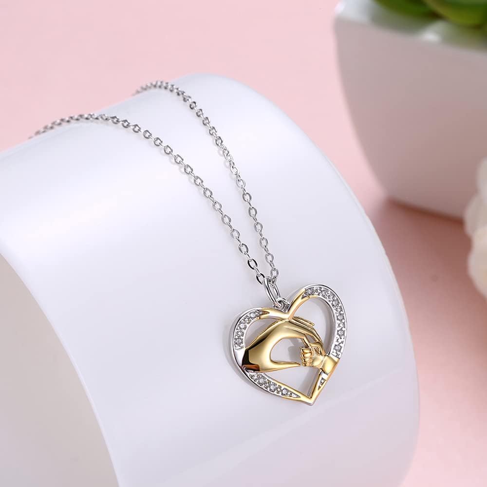 【Perfect Design】This elegantly designed hollow heart pendant necklace embodies the deep bond between a mother and her child. This elegant piece of jewelry showcases a heart pendant tenderly depicting mother and child clasping hands, symbolizing their unbreakable bond and unconditional love. The pendant is further accentuated by a delicate arrangement of sparkling moissanite gemstones, adding a touch of luxury and sparkle to the necklace.
