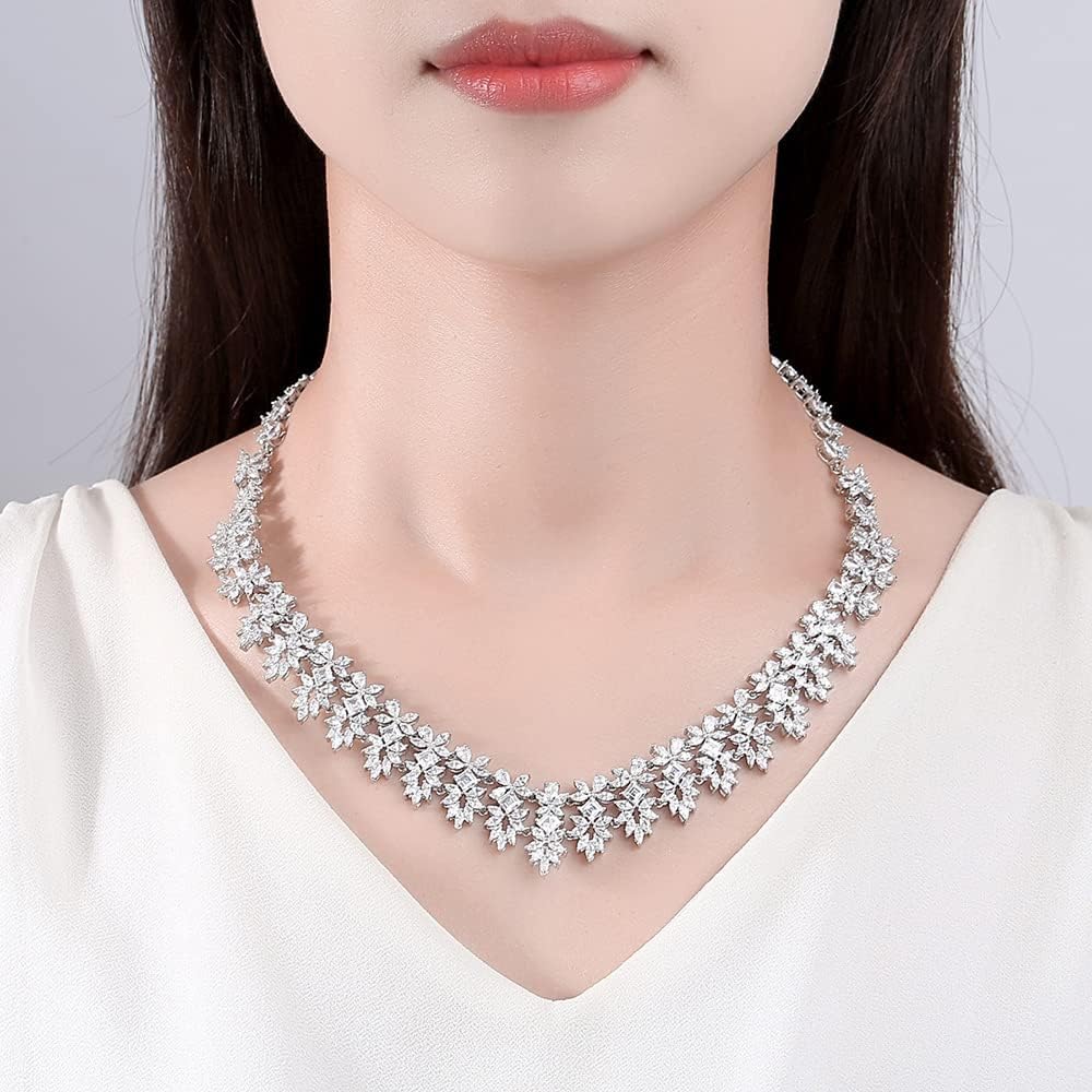 【Artful Conception】The radiant interplay of crystals and moissanite intricately aligns in a branch motif, enhancing the allure of the neckline. Complemented by a secure lock design, this necklace is a refined accompaniment for elite gatherings and banquets.