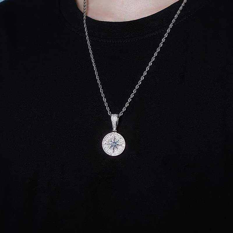 Compass Pendant Necklace for Women, Sparkling Blue Crystal & Moissanite North Star Design, Travel-Inspired Unique Jewelry Gift for Her