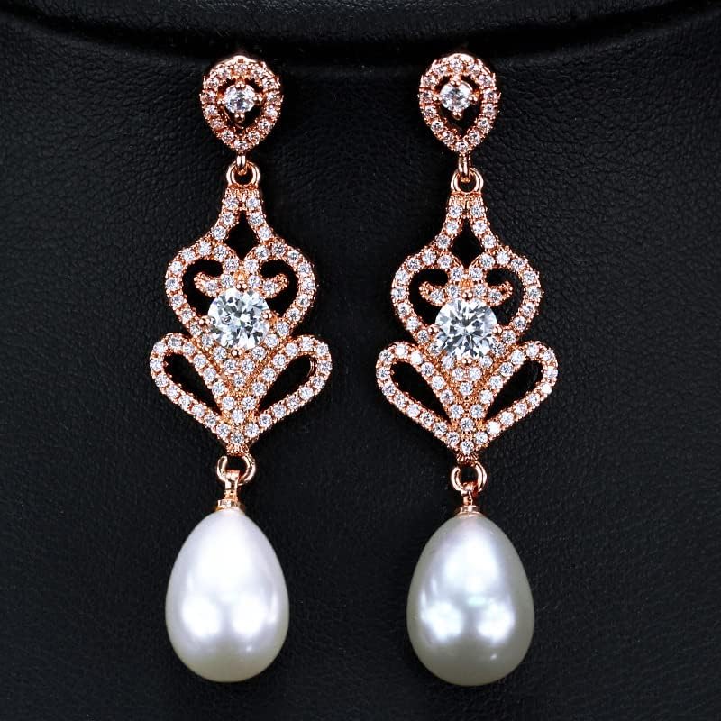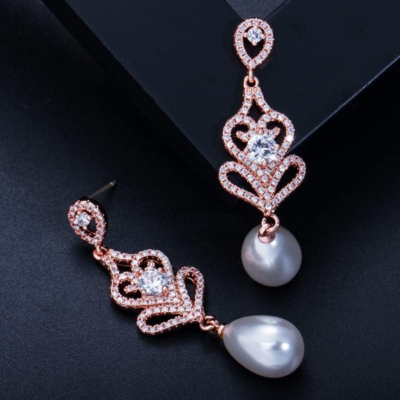 【Luxury Design】This is a unique pearl drop gold earrings. The long version has a more advanced design, the earrings are studded with sparkling crystals and moissanite, and a freshwater white pearl hangs at the bottom, beautiful and generous, suitable for all occasions.