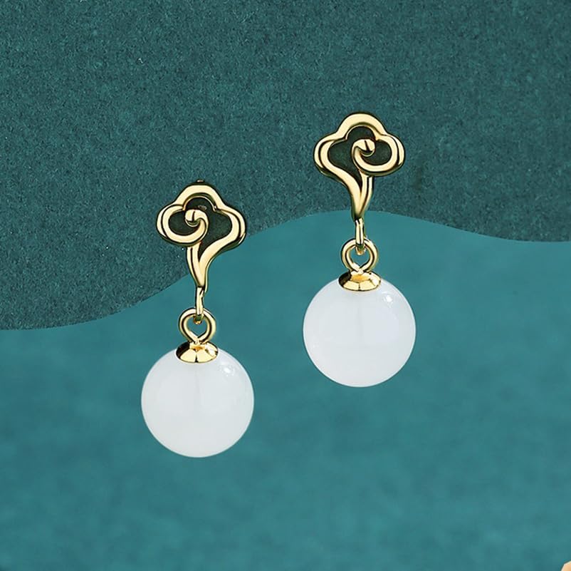 【High Quality Material】Using 18K gold, natural jade, handmade by masters, it will not fade or cause ear discomfort when worn for a long time.