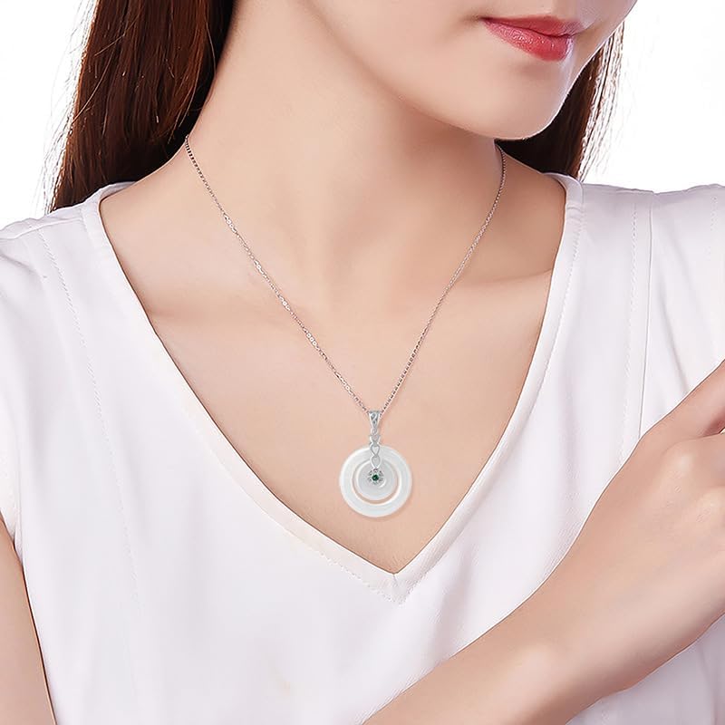 18K White Gold Jade Necklace, Grade A Natural Jadeite Barrel Pendant Necklace, Birthday Gift for Mother, Wife, Girlfriend