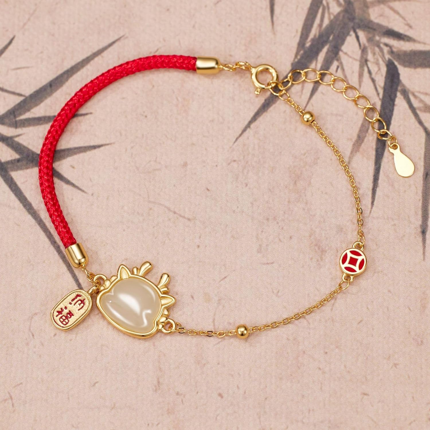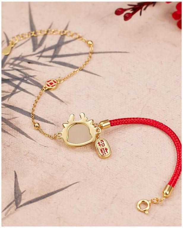 Home Jade Featuring a 14K Gold Year of the Dragon Cute Dragon Fortune Auspicious Zodiac Dragon Lucky Charm Red Rope Bracelet with Hetian Jade, it’s the Ideal Gift for Women, Wife, Girlfriend on New Year, Birthday, and Special Occasions, conveying Good Wishes.