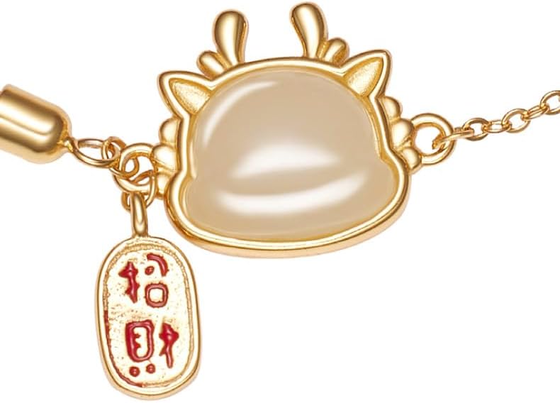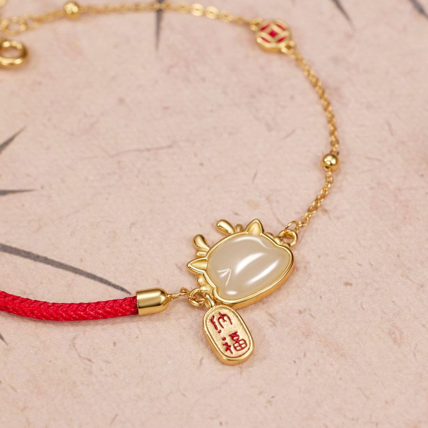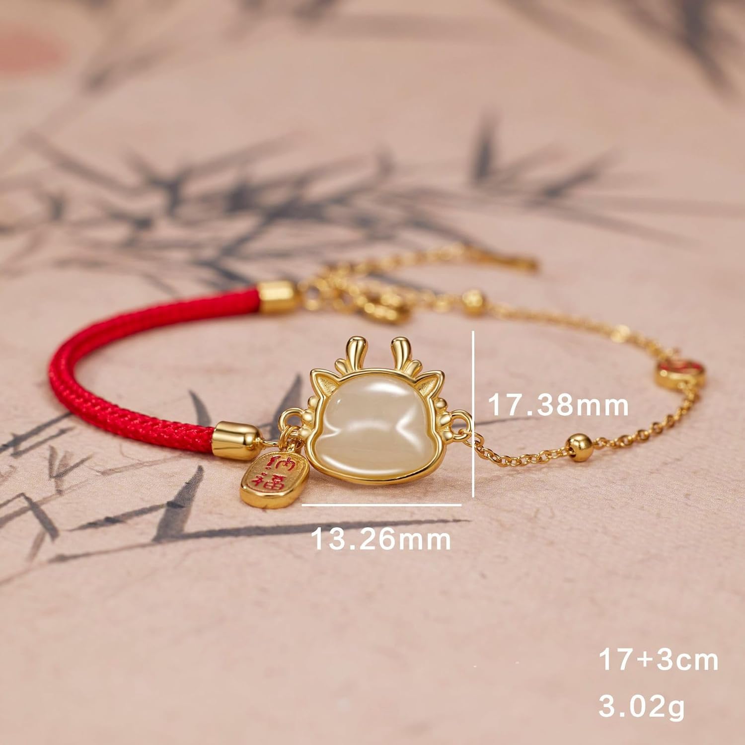 Featuring a 14K Gold Year of the Dragon Cute Dragon Fortune Auspicious Zodiac Dragon Lucky Charm Red Rope Bracelet with Hetian Jade, it’s the Ideal Gift for Women, Wife, Girlfriend on New Year, Birthday, and Special Occasions, conveying Good Wishes.