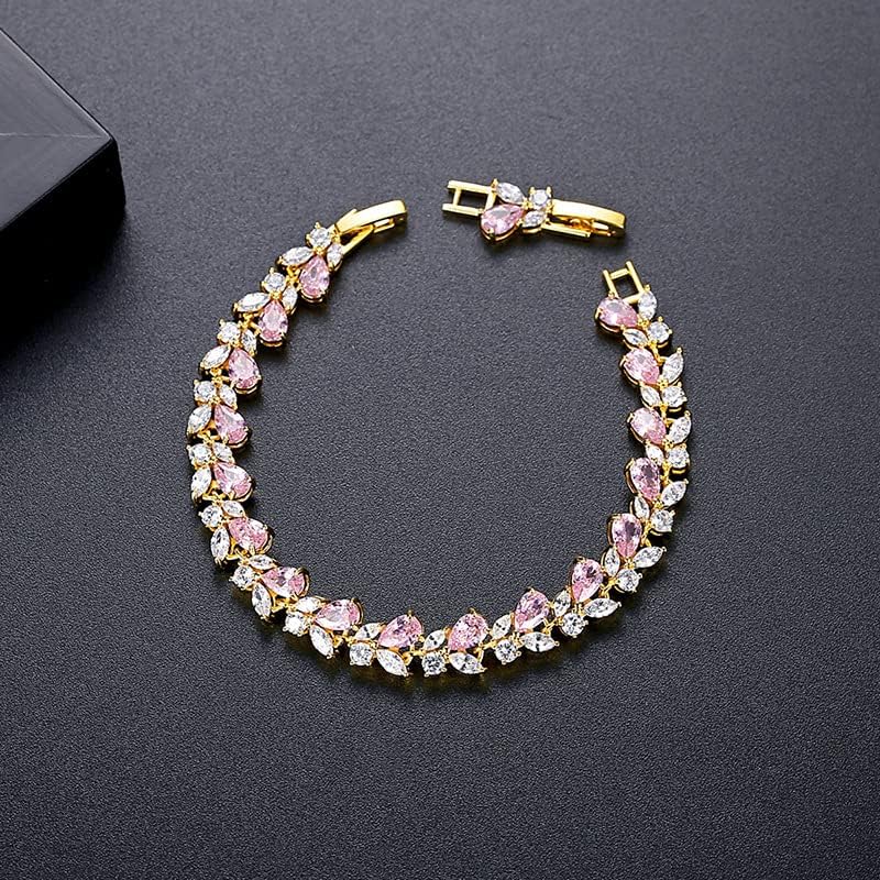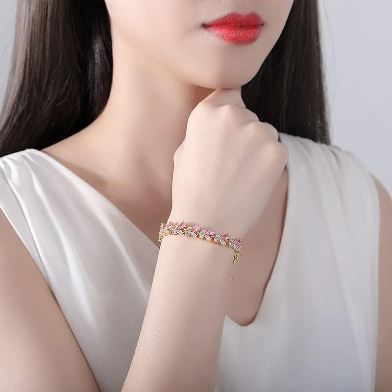 【Unique Shape】The overall shape of this crystal bracelet is like the shape of a branch, inlaid with two rows of crystals, pink and transparent, which add a sense of hierarchy and are suitable for all occasions.