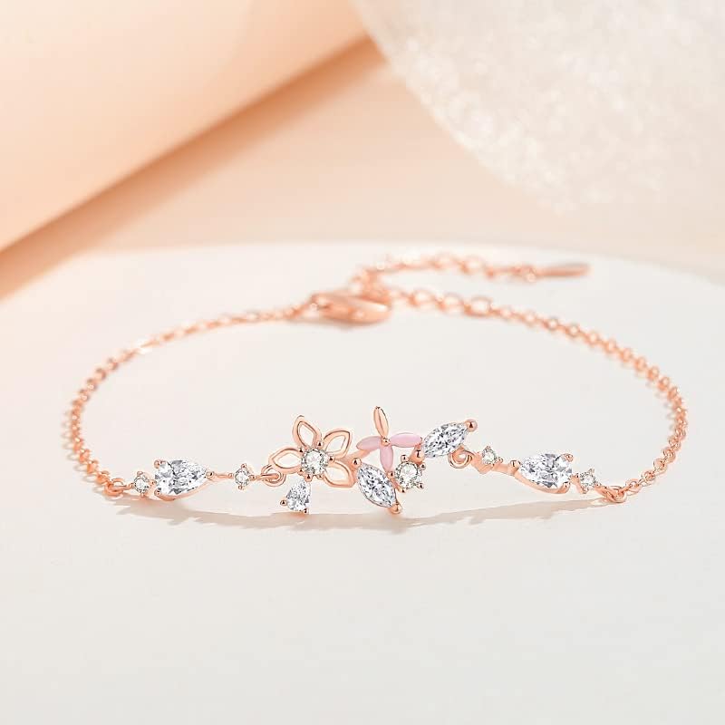 Home Bracelet Gold Cherry Blossom Bracelet, Sparkling Moissanite – Perfect Gift for Mother, Wife, Girlfriend
