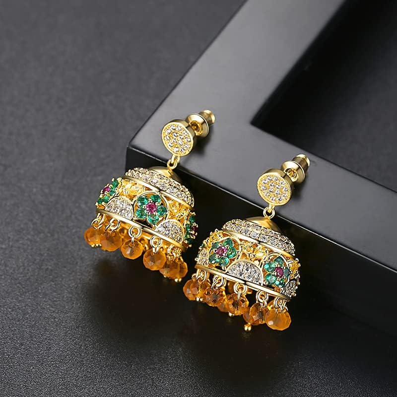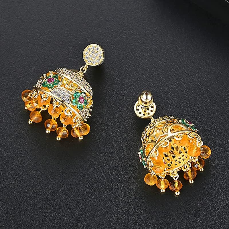 Home Earrings Gold Crystal Chandelier Earrings for Women, Vintage Court Style Yellow Crystal Tassel Long Drop Earrings, Fashion Jewelry Gift for Her