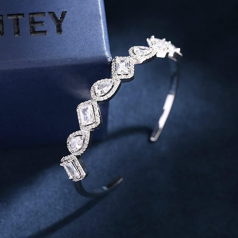 【Open Design】This crystal bangle adopts an open design, which is more convenient to wear. The bangle is inlaid with diamond-shaped and drop-shaped natural crystals, which refract different colors under the light, and are suitable for all occasions.