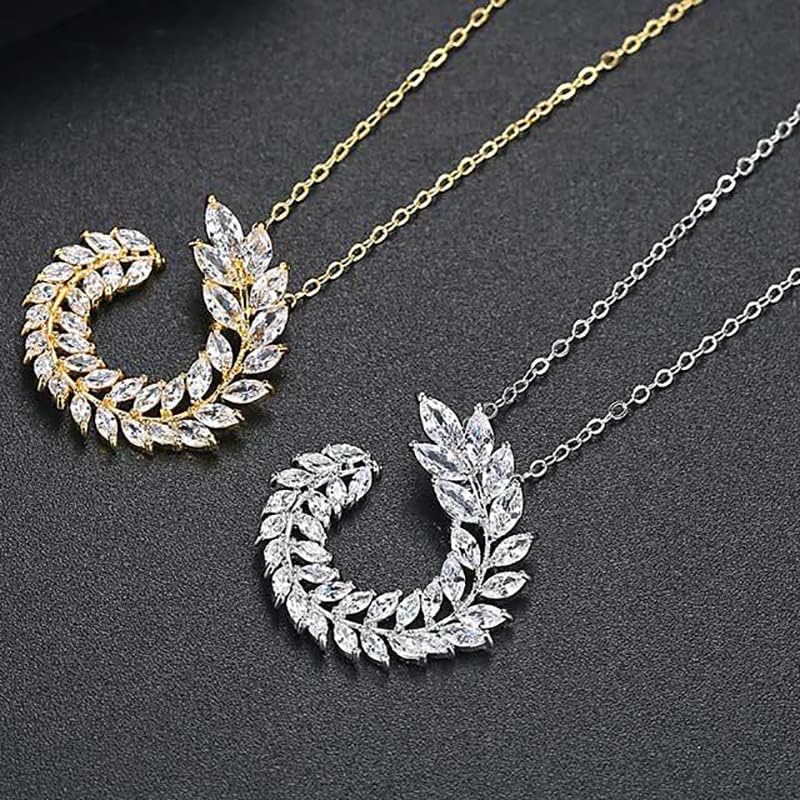 Home Necklaces Gold Crystal Pendant Necklace, Delicate Ears of Wheat Style, Adjustable Chain, Fashionable Jewelry Gift, Classy Accessory