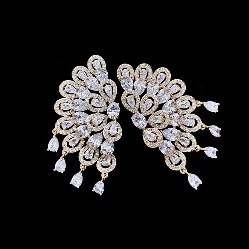 【Unique shape】This tassel earrings are inlaid with exquisite crystals and moissanite. The overall shape is fan-shaped. White and blue crystals are dotted with each other, and they are as gorgeous as a peacock with its tail open. It is suitable for wearing when attending important banquets and gatherings.