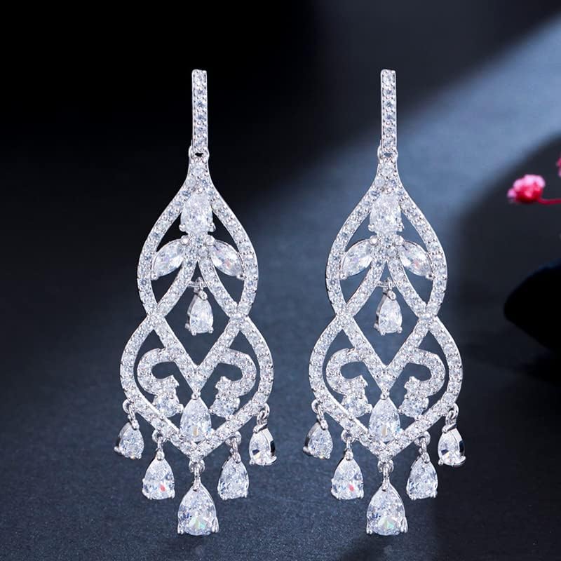 【Tassel Design】This tassel chandelier stud earrings are inlaid with sparkling crystals and moissanite. The exaggerated and gorgeous design combines the beauty of art. It is suitable for wearing at important banquets and parties.