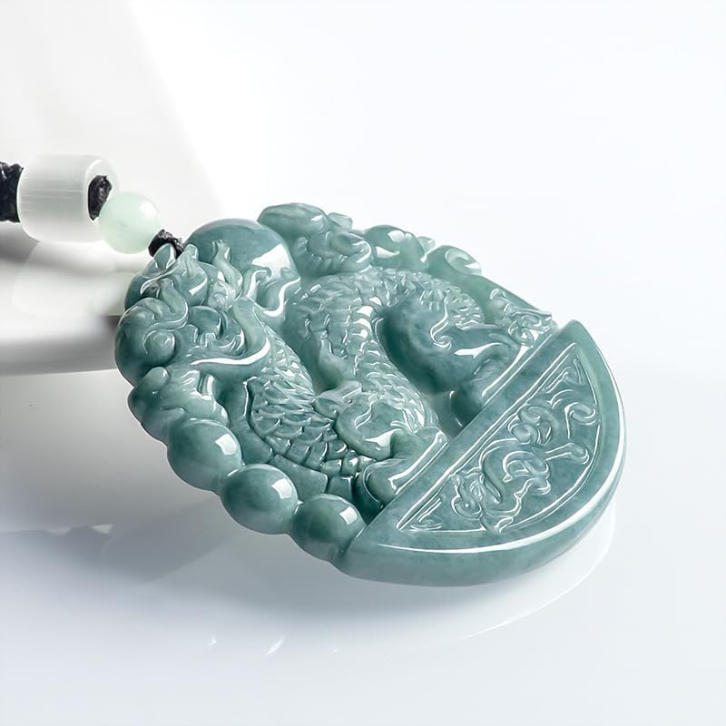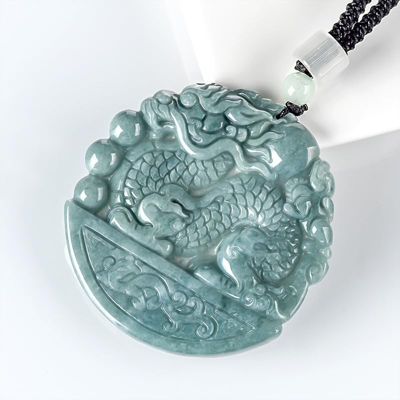 【Unique Design】Embrace the serenity and blessings of the Lunar New Year with our Jade Blue Water Dragon Playing with Pearls Pendant Necklace and Blue Water Oval Dragon Necklace. Symbols of wisdom and balance, perfect for ushering in prosperity and harmony. The vibrant emerald blue hue and playful dragon design offer elegance and cultural significance.