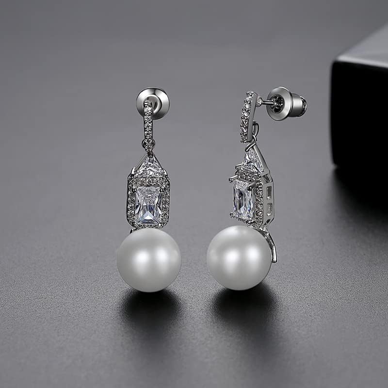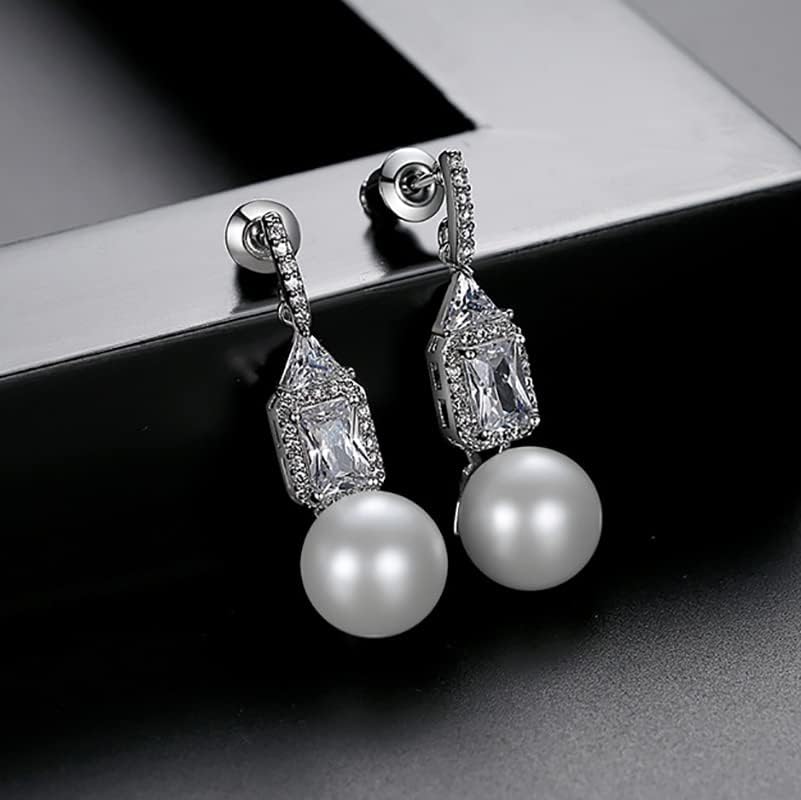 【Unique Design】The perfect combination of white freshwater pearls and natural geometric style crystals. The overall shape of the pendant earrings is presented in the form of a pendant, which is suitable for various occasions and is the perfect earring.