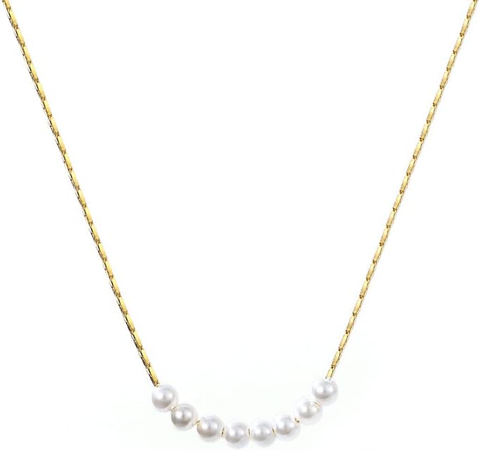 【Unique Design】The perfect combination of freshwater pearls and pure gold chains creates this pearl necklace for all women, tightly arranged white dazzling pearls are like the love between you and your lover will never be separated.