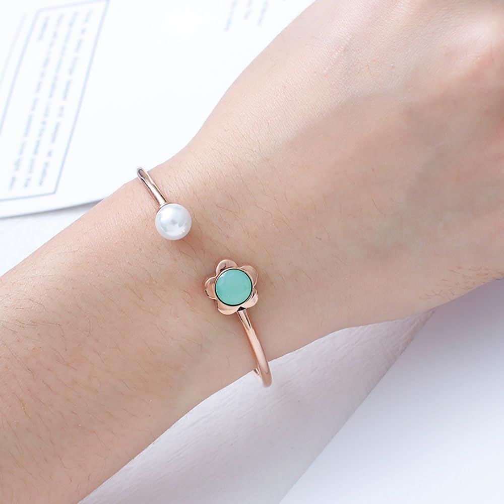 Home Bracelet Gold Freshwater Pearl Open Cuff Bangle for Women, Dainty Green Greenstone Bracelet, Fashion Christmas Jewelry Gift