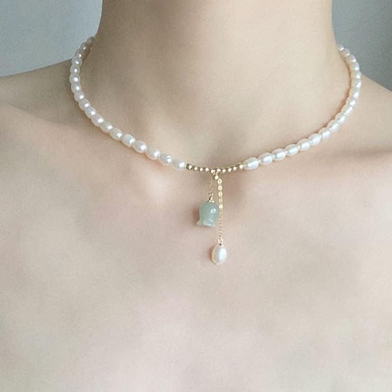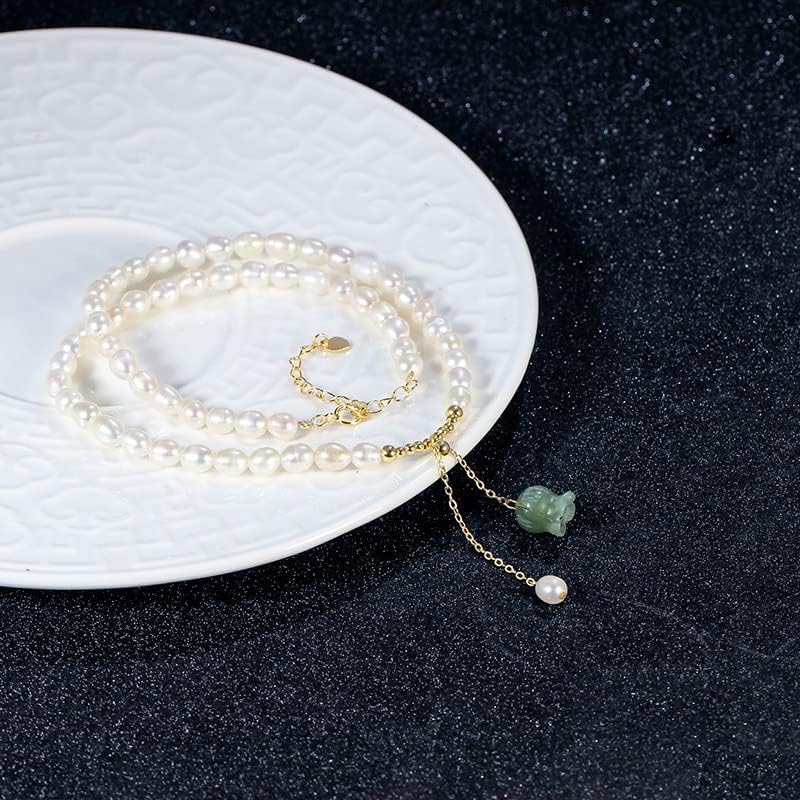 【High-quality materials】Crafted with 14K gold, natural jade, and freshwater pearls by skilled artisans, attention to detail for a stunning piece
