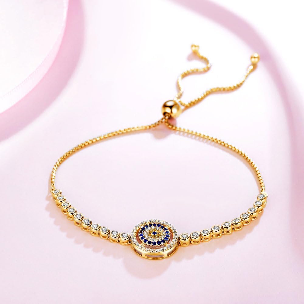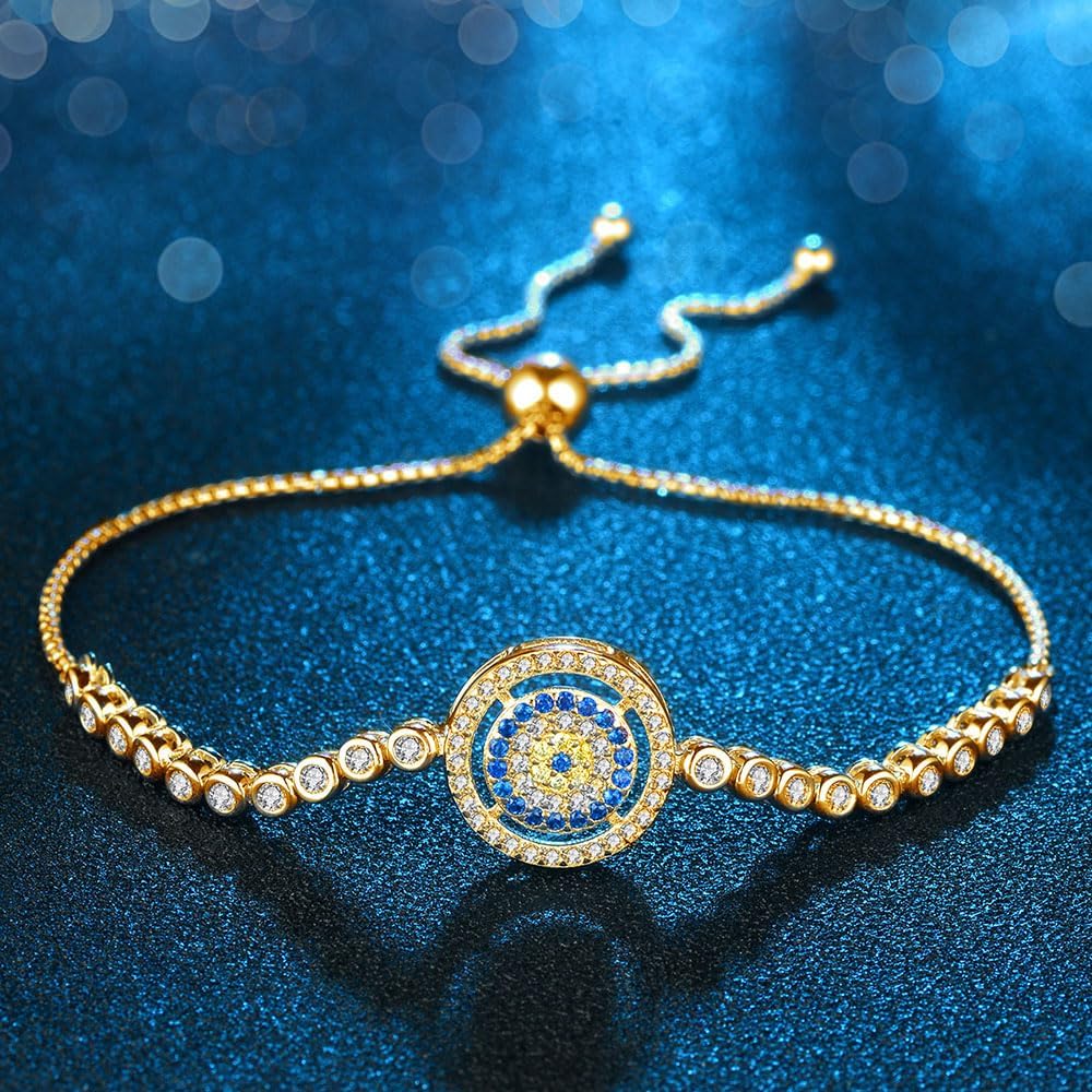 Home Bracelet Gold Moissanite Evil Eye Bracelet for Women,Dainty Hamsa Pull-out Link Bracelet,Fashion Jewelry Gift for Her,Adjustable 8″ to 10″