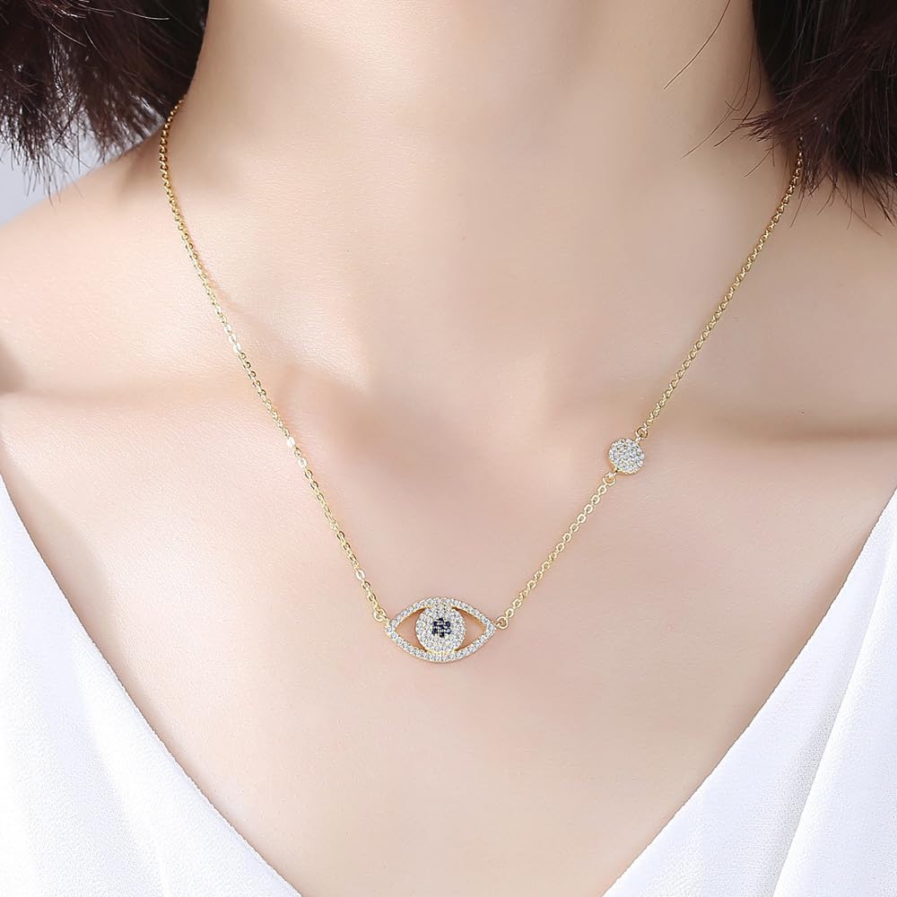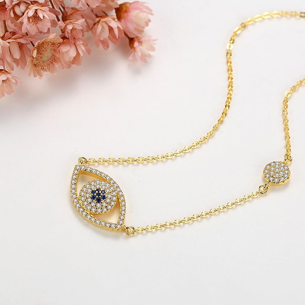 Home Necklaces Gold Moissanite Evil Eye Pendant Necklace for Women,Dainty Sapphire Devil’s Eye Protection Charm Necklace,Lucky Jewelry Gift for Her