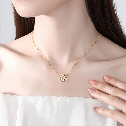 Home Necklaces Gold Moissanite Snowflake Pendant for Women, Elegant Choker Necklace with Adjustable Chain, Timeless & Sophisticated Fashion Jewelry