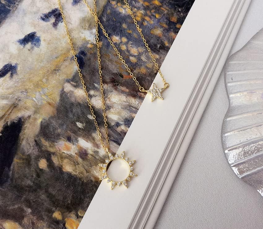 【Necklace Size】The length of the necklace chain is 16.5 inches (37+5cm), the size of the sun pendant is 18.6*16mm, the size of the star pendant is 12*8.4mm, and the weight of the necklace is about 2.67 grams, which is suitable for everyone to wear.
