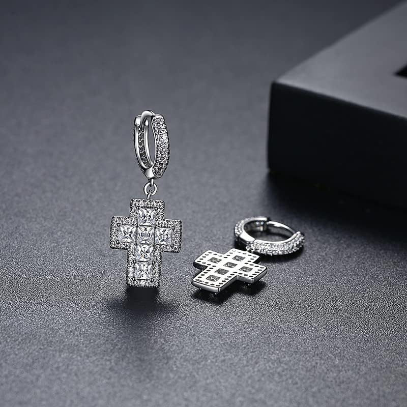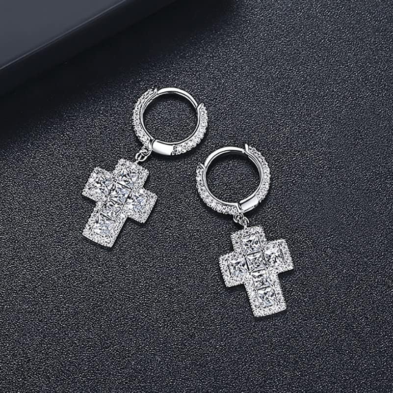 18K Gold Moissanite Cross Earrings, Fashion Earrings for Men and Women, Beautiful Fashion Gift