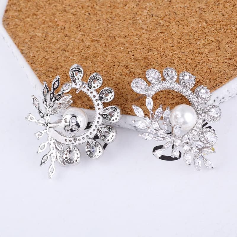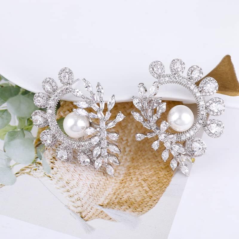 【Unique Shape】This is a delicate pearl hoop gold earrings. Glittering crystal and moissanite earrings in the shape of a tree branch with a freshwater white pearl dangling from the base, beautiful and elegant for all occasions.