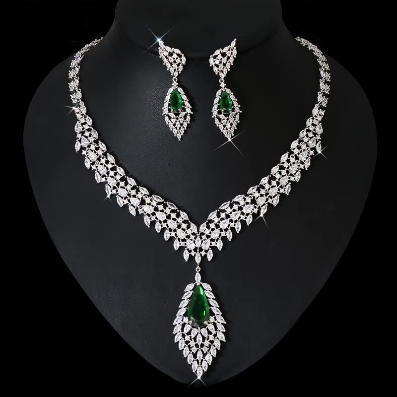 【Shiny Design】This is a shiny jewelry set consisting of a pendant necklace and a pair of drop earrings, inlaid with natural crystals, and the overall shape is like an open wing, which is the most suitable jewelry set for weddings and engagement occasions .