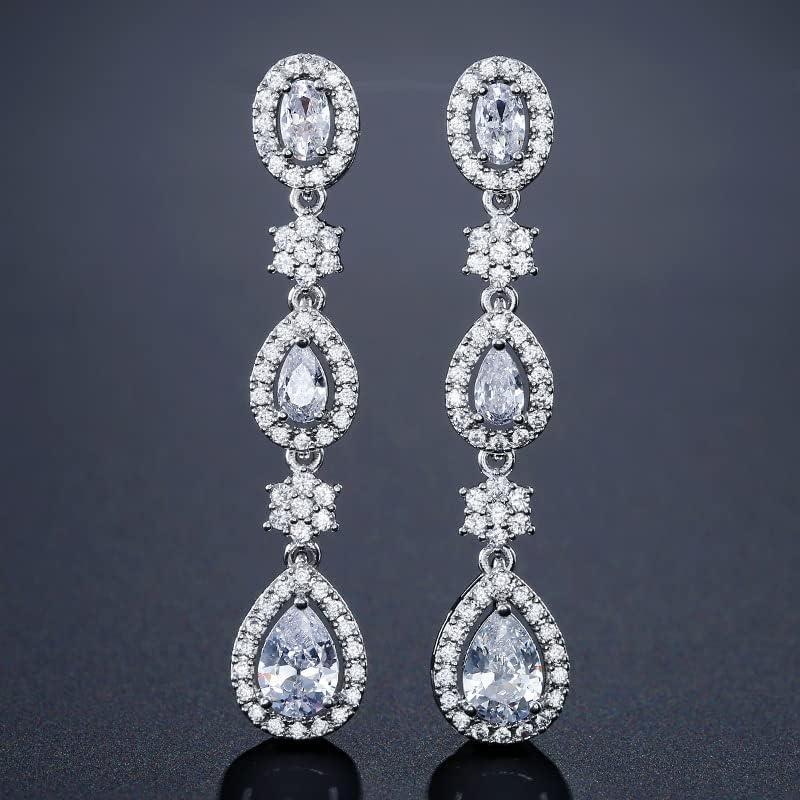 【Long Design】The unique long drop earrings are set with sparkling crystals, teardrop shaped crystals, embellished with a circle of round moissanite. The exaggerated and gorgeous design combines the beauty of art, suitable for various occasions.