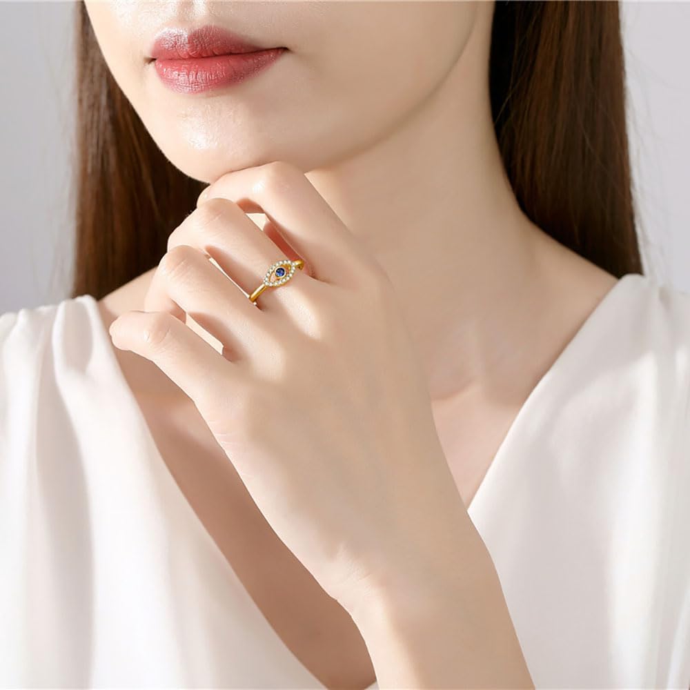 【Adjustable Comfort】Our evil eye ring’s adjustable design ensures a perfect fit for any finger size, providing flexibility and comfort. The slim 2.0g profile makes it suitable for all-day wear without compromising on elegance.