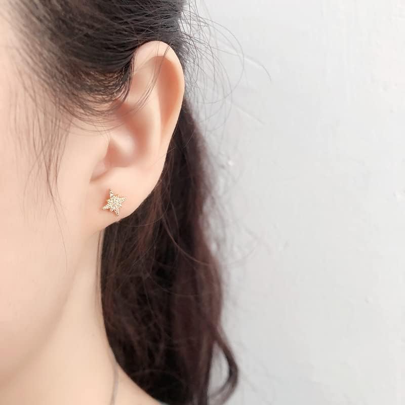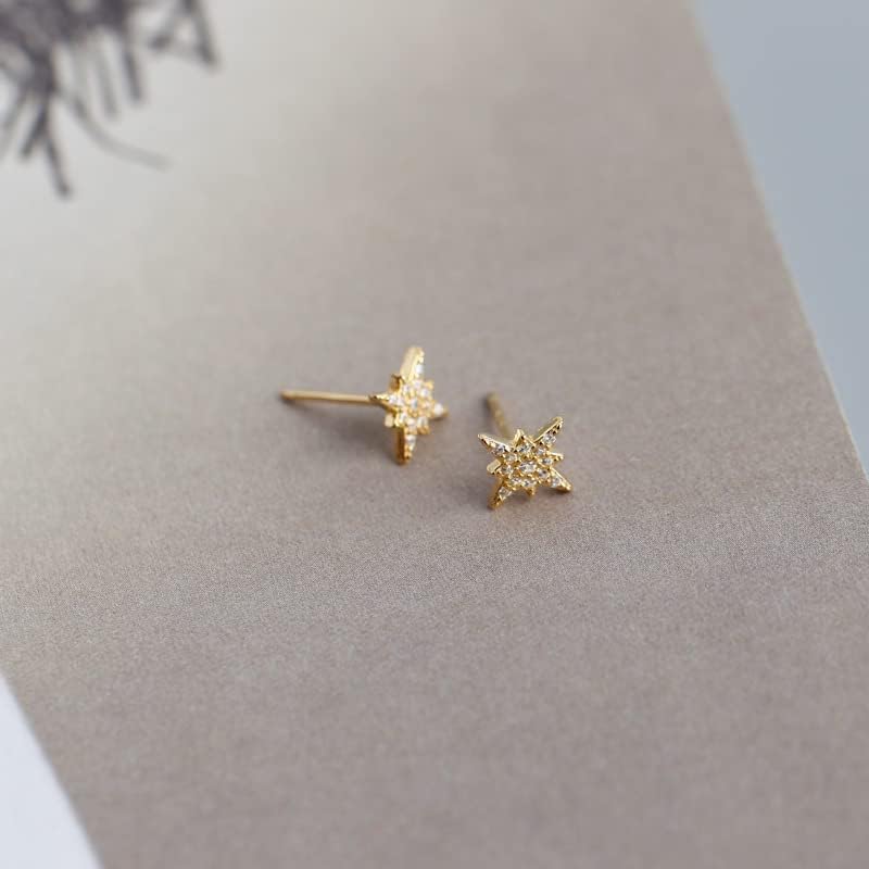 Home Earrings Gold Over Anise Star Earrings, Dainty Moissanite Star Stud Earrings, Fine Jewelry Gift for Her