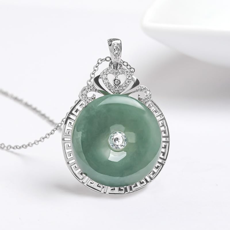 Home Jade Gold over S925 Silver Pendant Necklace, Ice Jade Peace Buckle Necklace, Ideal Gift for Those Seeking Peace and Tranquility