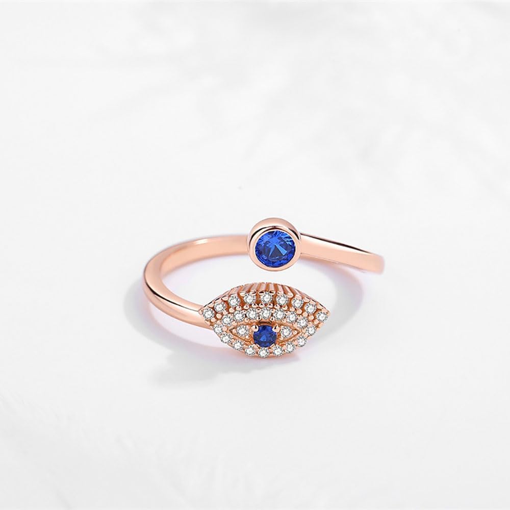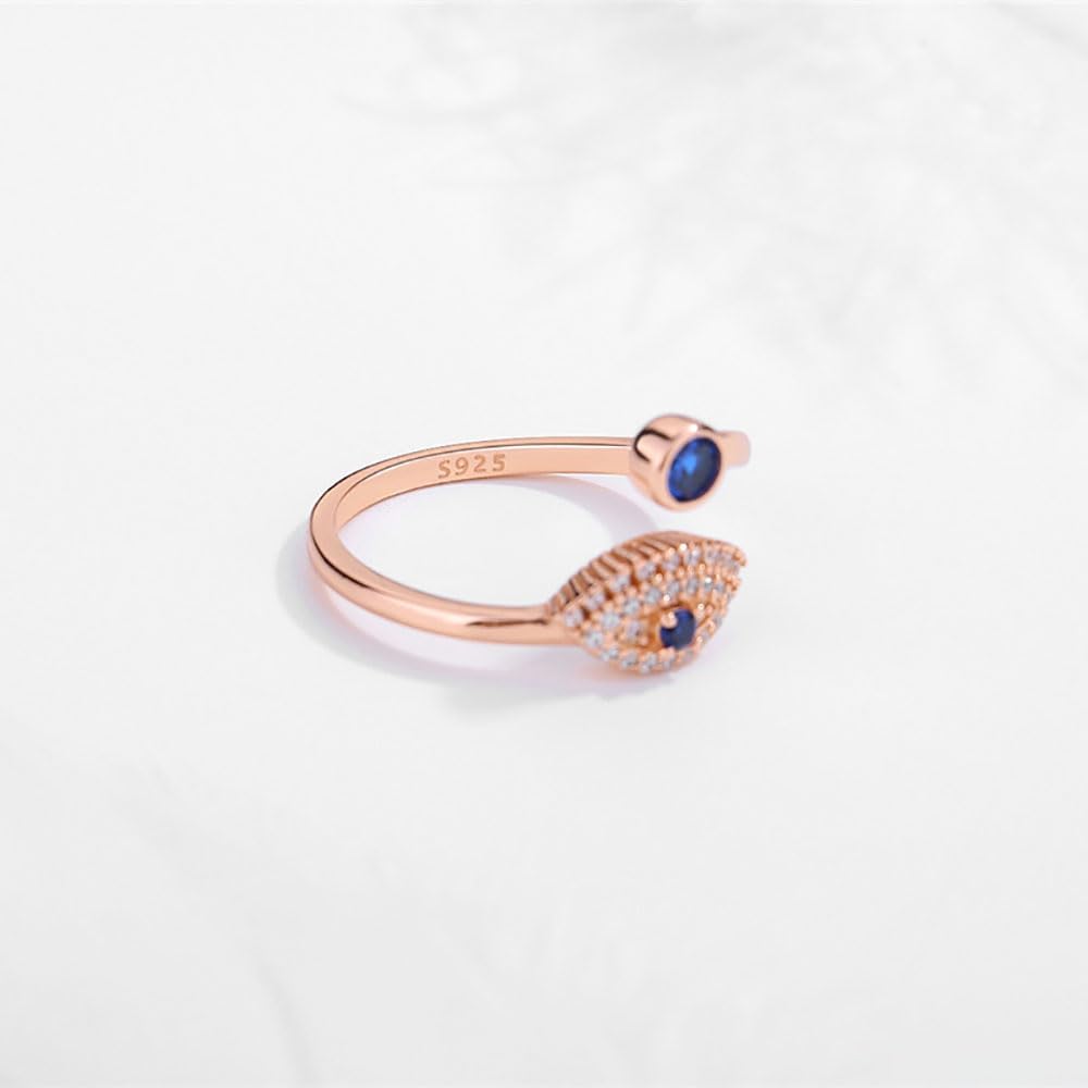 Home Rings Gold Over S925 Sterling Silver Evil Eye Adjustable Ring,Dainty Devil’s Eye Rings Embellished with Moissanite and Sapphire,Fashionable Lucky Jewelry for Women