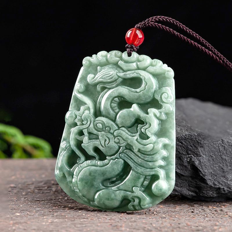 【Unique Design】This zodiac dragon necklace is made of bean green dragon brand pendant jadeite, a great gift for family and friends. Vibrant green tones with auspicious dragon patterns create a visually stunning piece filled with positive energy and blessings.