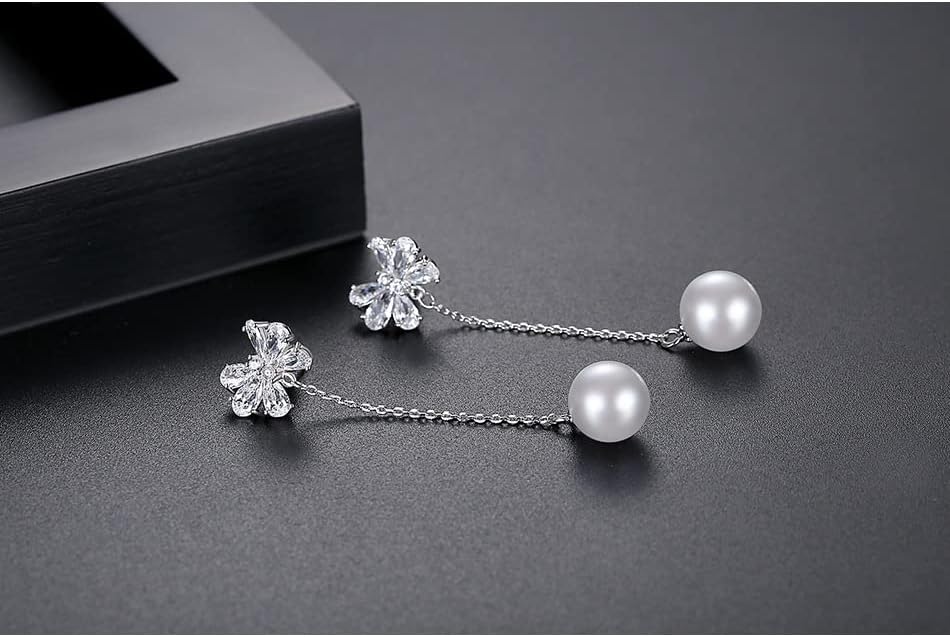 【Exquisite Design】This is a unique pearl drop earrings. The design of the long chain is more advanced. The top of the earring is inlaid with moissanite, and a freshwater pearl hangs at the bottom, which is beautiful and generous.