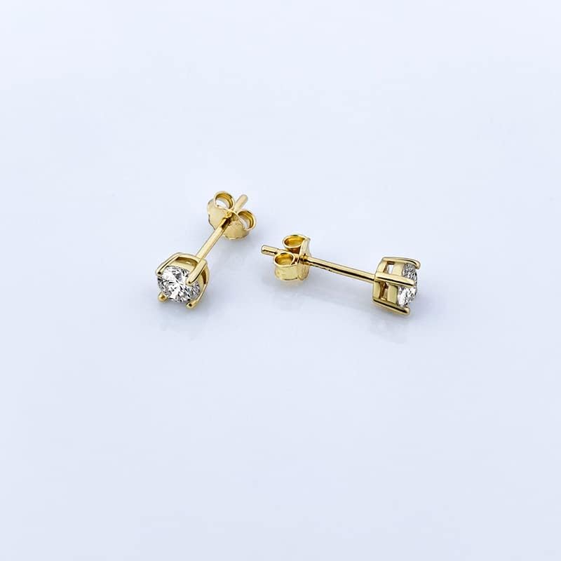 Gold Plated Cubic Zirconia Simulated Diamond Stud Earrings, Dainty S925 Silver 4 Prong CZ Studs, Fashion Jewelry Gift for Women