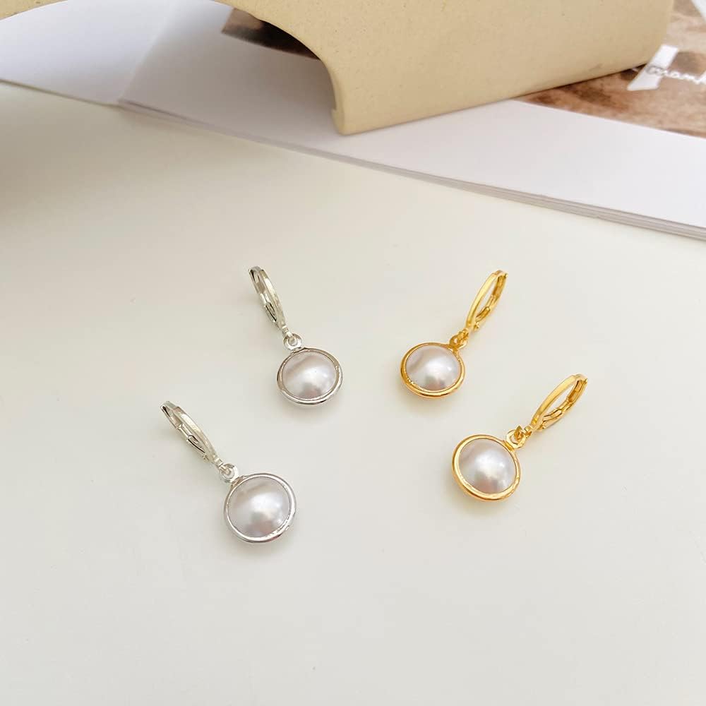 Home Earrings Gold S925 Sterling Silver Pearl Earrings, Elegant Circle Dangle Earrings, Great Jewelry Gift