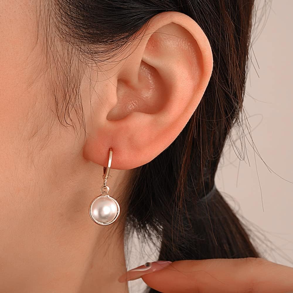 【Hypoallergenic】Our stunning Pearl Drop Earrings are crafted with simulated shell pearls that are created in a laboratory using mother of pearl. Coated with a layer of natural nacre for a luminous, glowing finish, and the inlaid zircons sparkle alluringly. The pearls are set on durable, high-quality hoops that are both stylish and comfortable to wear.