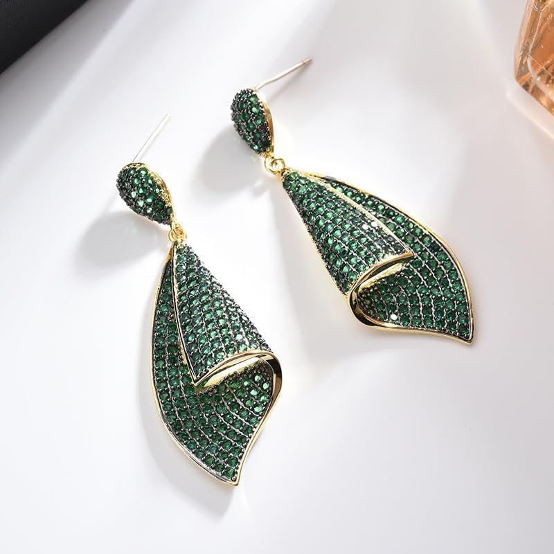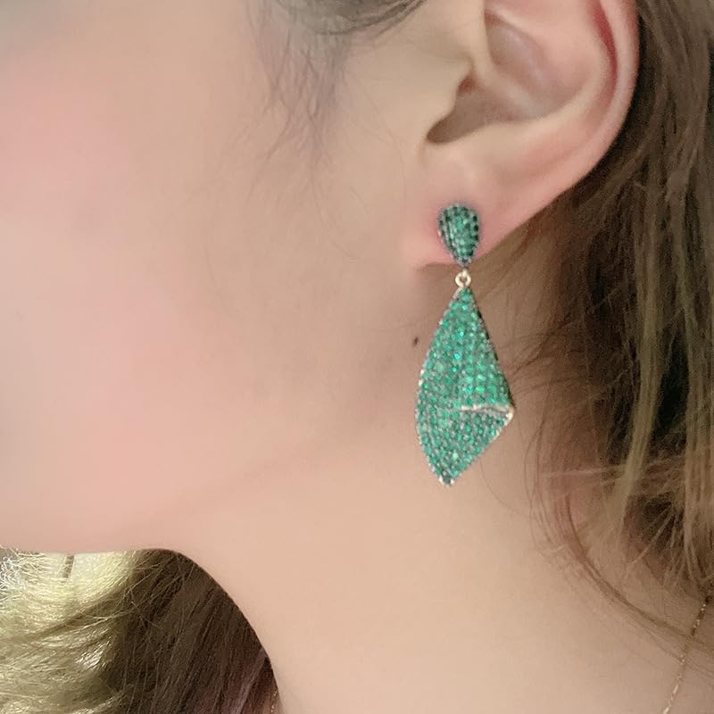 【Premium Quality】Quality is our top priority. The earrings are made from 18K gold, known for its durability and brilliant shine. Combined with pave-set Emerald, these earrings exude an irresistible sparkle, enhancing your radiance wherever you go.